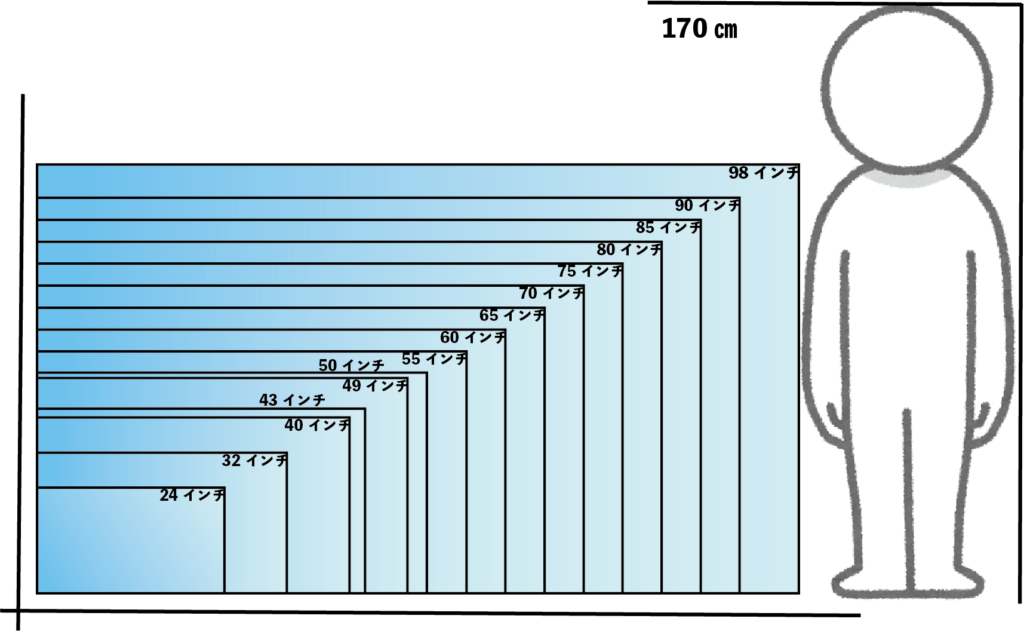 最終的には購入されるテレビやモニターの仕様書および図面の画面表示サイズをご確認ください。