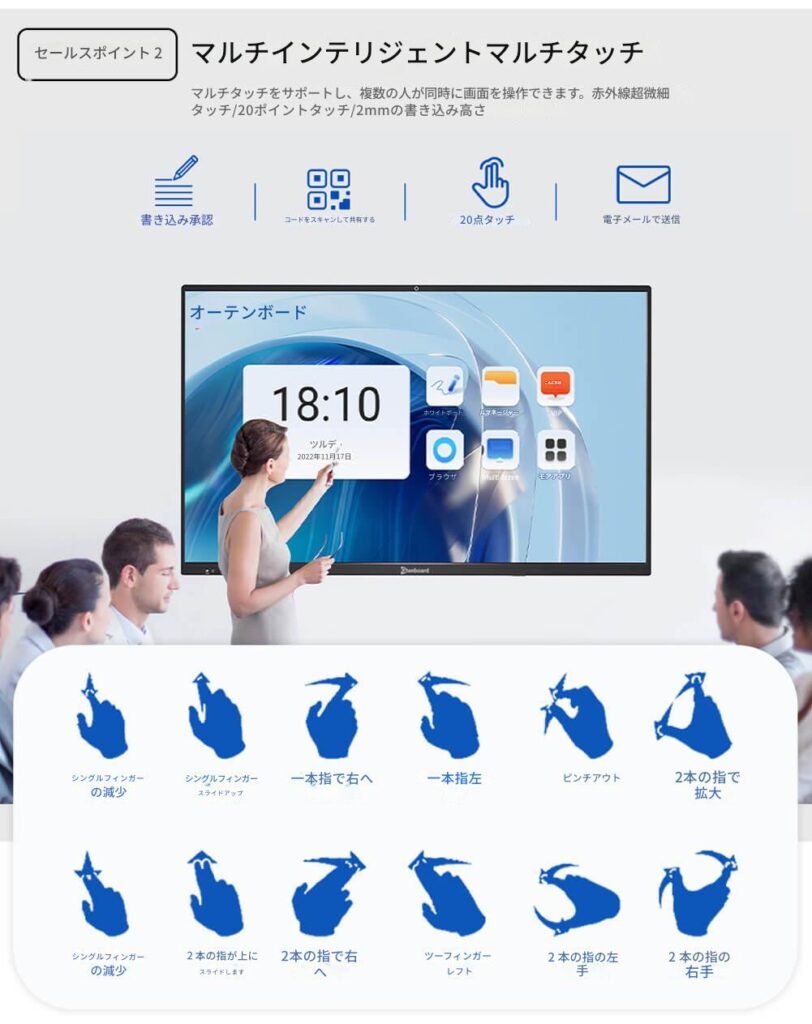 4K UHDタッチスクリーンインタラクティブホワイトボード Qtenboard