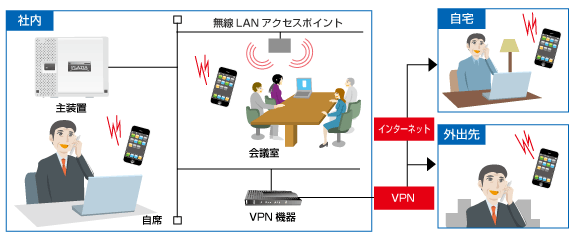 また、外出先でも社外の携帯網(データ通信)を介して、